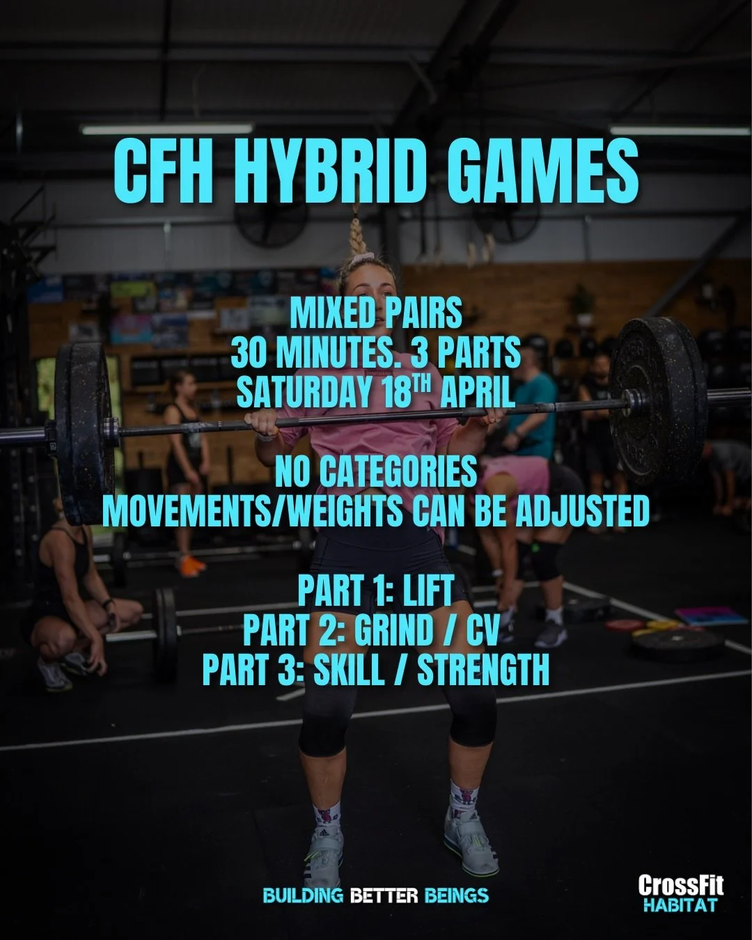 A varied, structured program where you will build strength, get fit, learn new skills and have a great time! Expect everything from lifting, gymnastics/ bodyweight movements and CV.